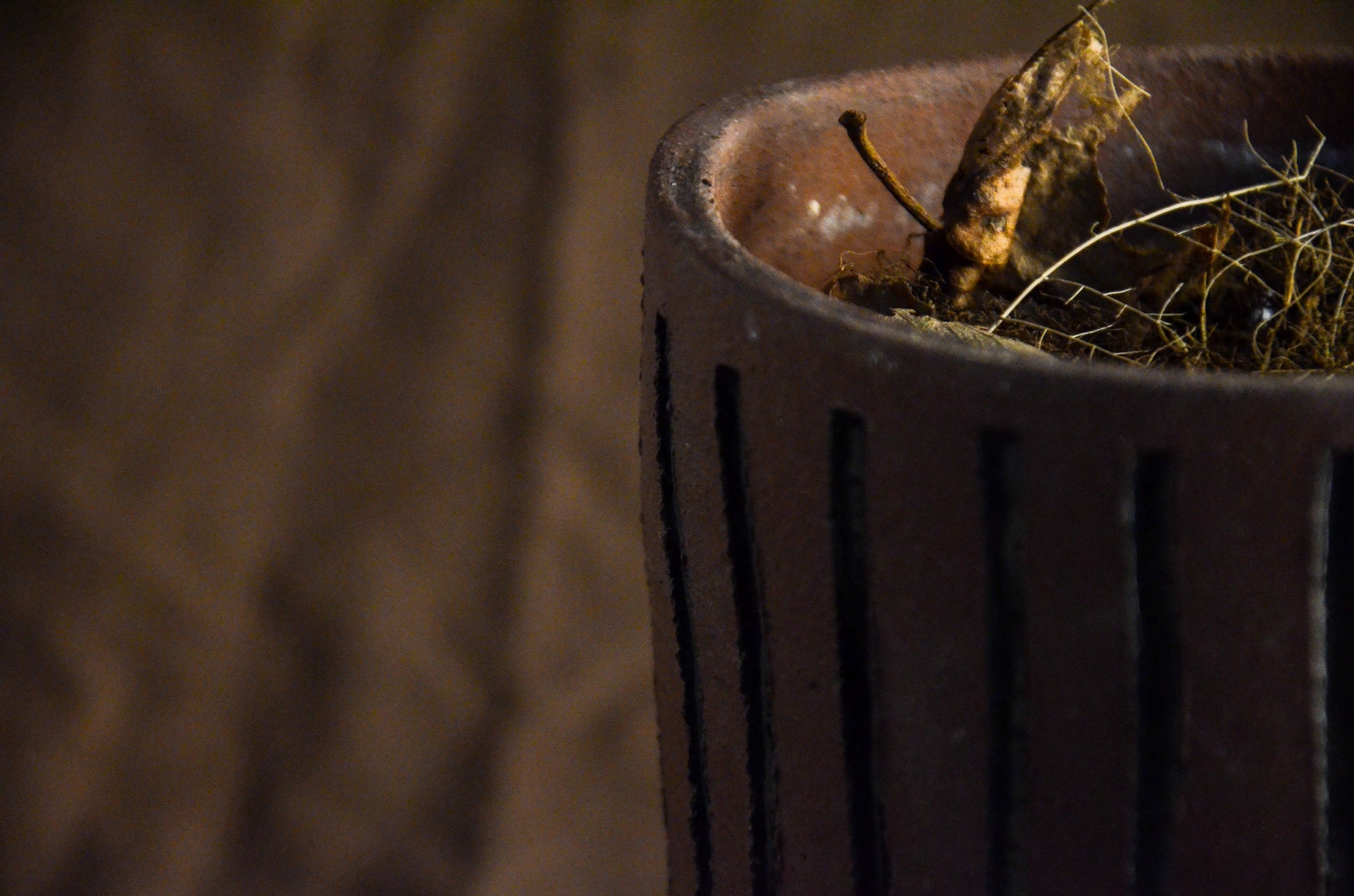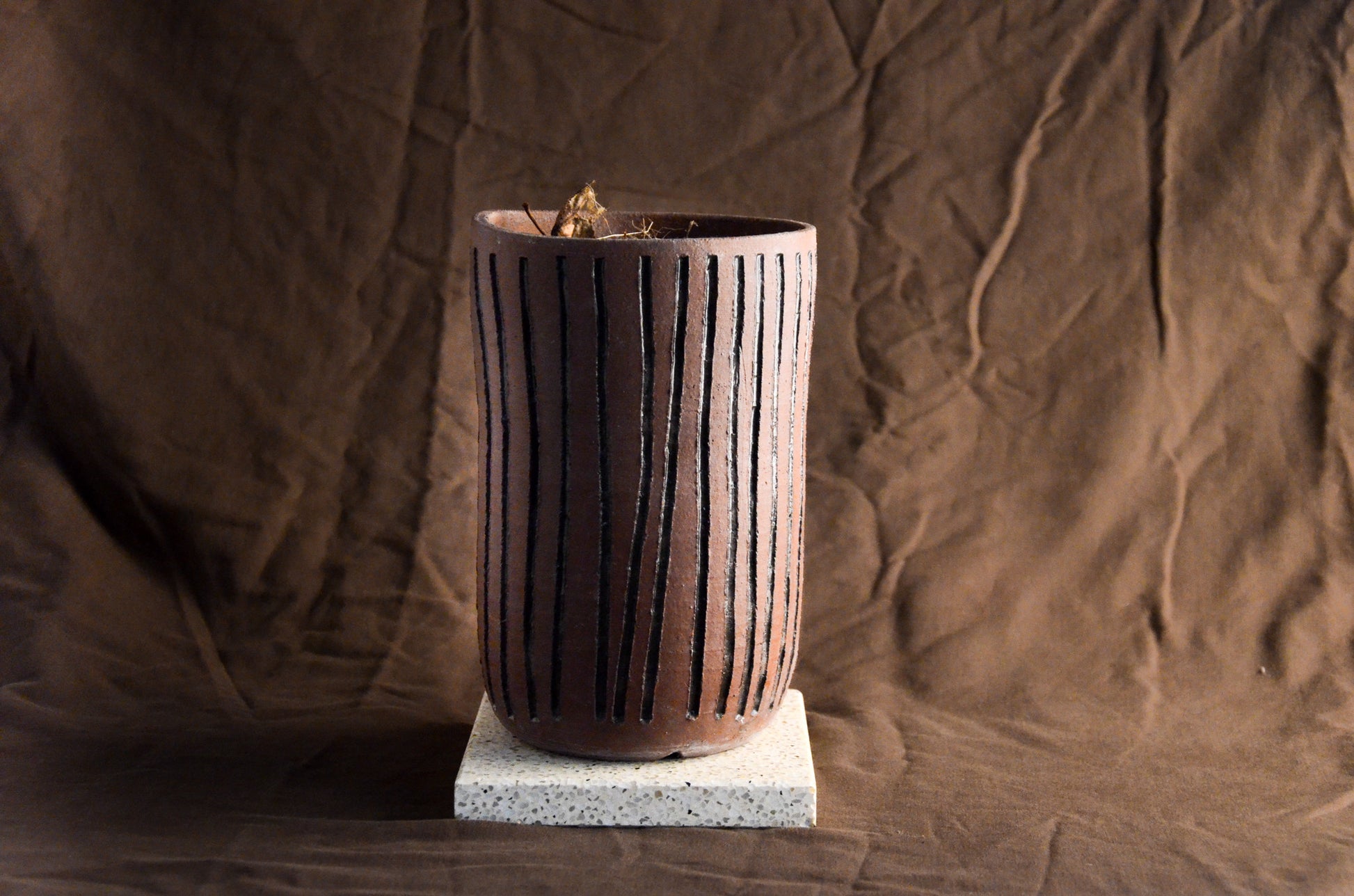 Brown cylinder textured planter