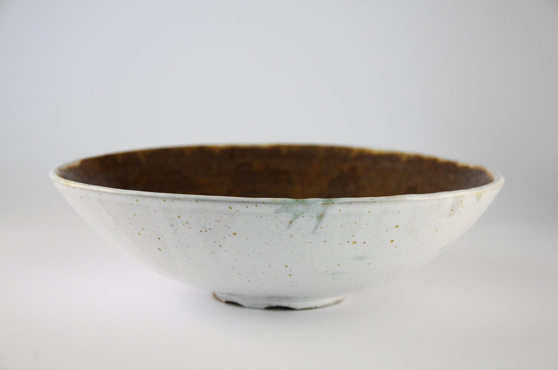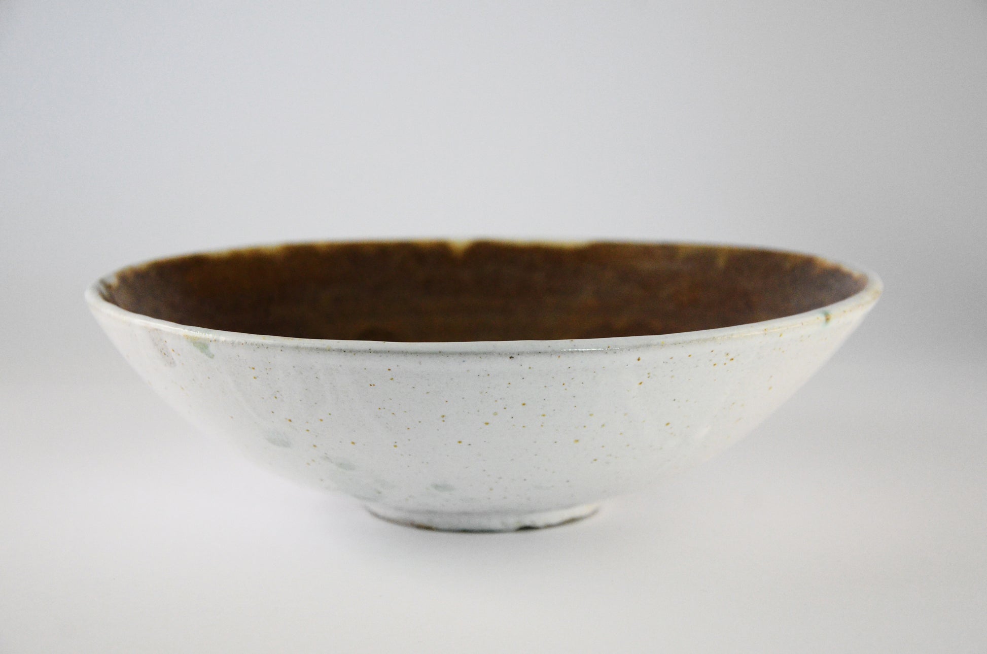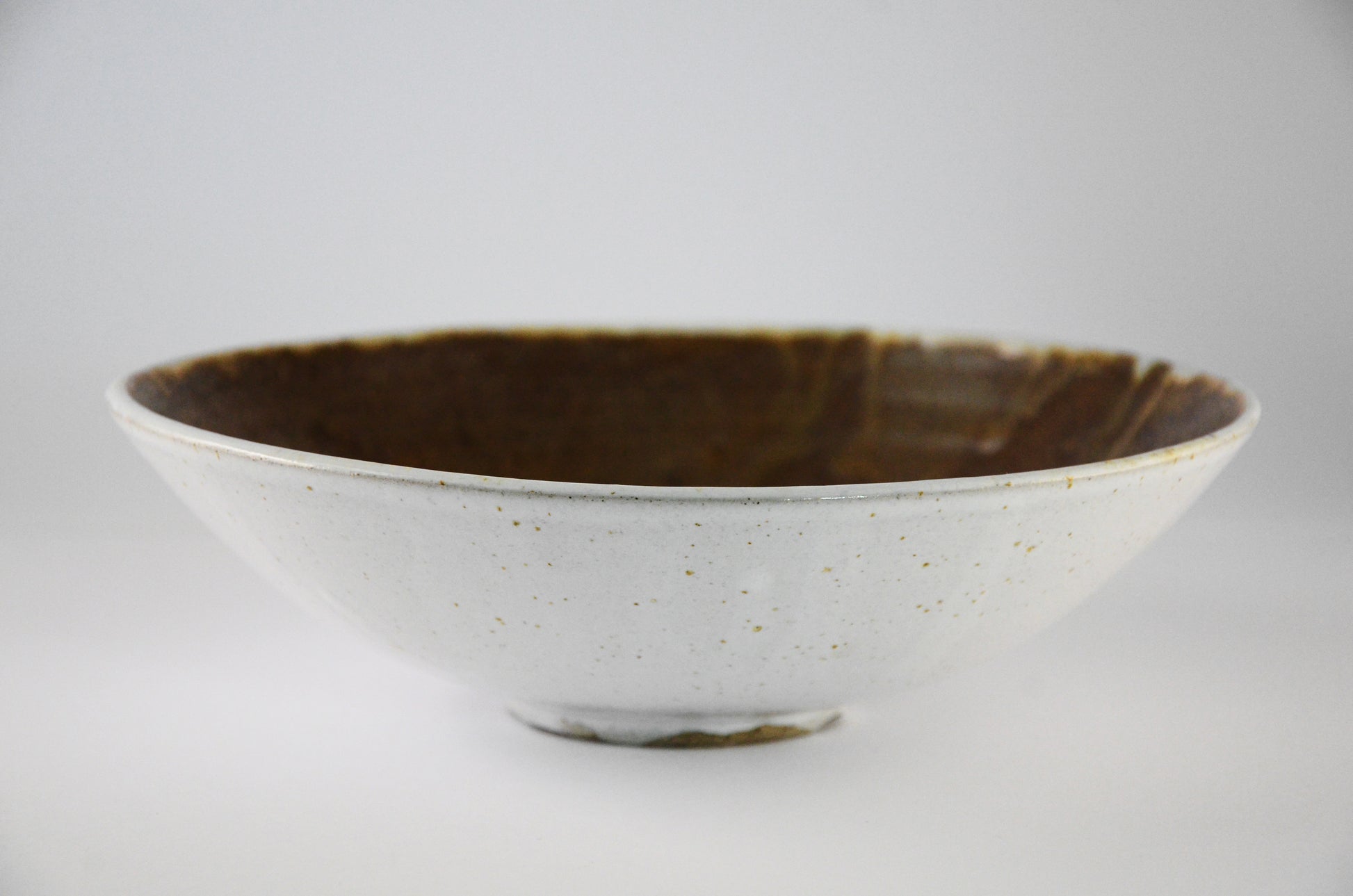 Add a sophisticated touch to your tableware with this Contrast Colors Bowel. Its smooth white exterior contrasts against its brown interior, complemented by delicate drips of glaze. Perfect for displaying foods or for use as a decorative piece.